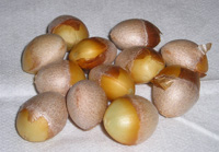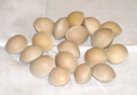 ご家庭で銀杏を召し上がる場合に、一番頭を悩ませることがこの「殻割り」作業だと思います。「木槌で叩いて殻を割る」、「ペンチで挟んで殻を割る」という方法もありますが、これらの方法では力加減を少しでも間違えるとせっかくの実をつぶしてしまい、もったいない思いをします。ホームセンター等の調理器具コーナーに、ぎんなん専用の殻割りペンチが置いてありますので、ご家庭での少量の殻割り作業にはこちらをオススメします。
